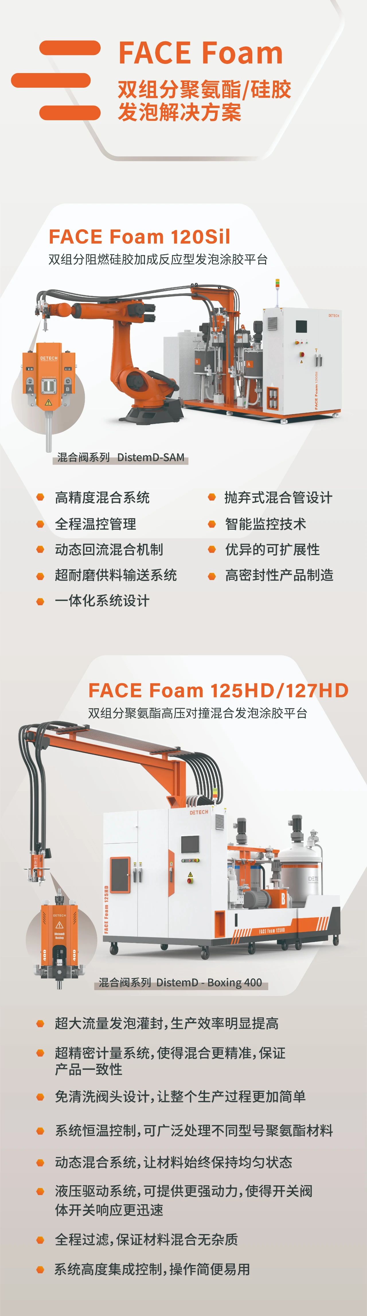 DETECH在雙組分硅膠發(fā)泡領(lǐng)域擁有領(lǐng)先的技術(shù),尤其是其FACE Foam 120Sil平臺(tái),在電池密封應(yīng)用中表現(xiàn)出色。這款平臺(tái)專門用于雙組分硅膠發(fā)泡,廣泛應(yīng)用于電動(dòng)汽車電池的密封和防護(hù)。