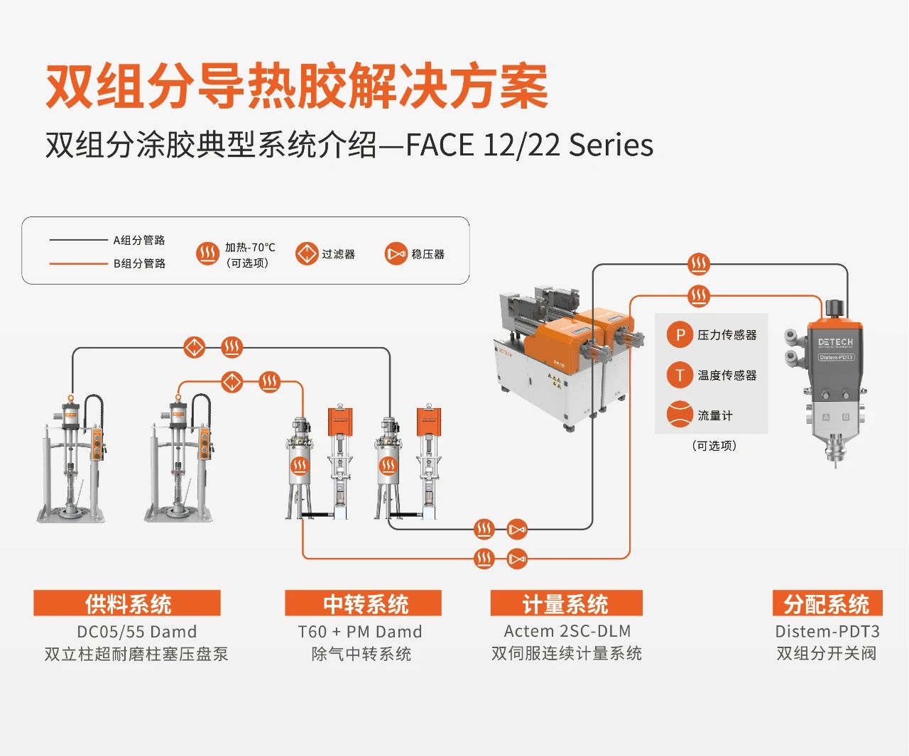 作為行業(yè)內(nèi)流體領(lǐng)域的領(lǐng)軍企業(yè),DETECH受邀參展,并在大會(huì)上展示了多款創(chuàng)新解決方案,涵蓋了雙組分聚氨酯/硅膠解決方案、高性能導(dǎo)熱膠以及丁基熱熔膠解決方案,特別是動(dòng)力電池涂膠組裝整體解決方案。